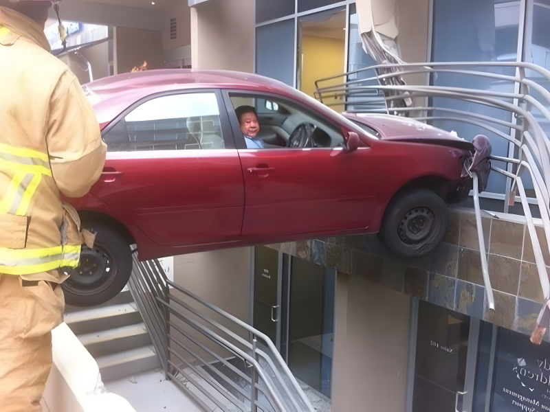 The driver might have imagined a hidden second level in the lot, leading to this amusing, unexpected scene that left everyone puzzled and entertained.