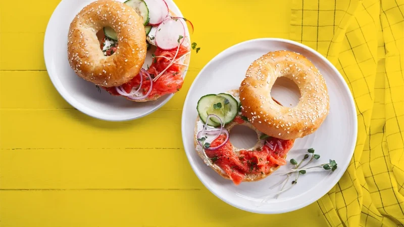 Standard bagels are dense rounds of refined white flour low in fiber. Popular toppings such as thick cream cheese or salty cured meats add saturated fat and sodium. Limit frequency and if you choose one use lighter spreads with lean protein like smoked salmon or a thin layer of nut butter.