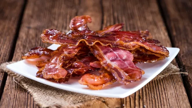 Bacon, sausages, and ham bring protein but also notable saturated fat and sodium. Frequent intake can raise long term health risk. Keep portions small and choose leaner proteins such as eggs with whole grain toast more often.