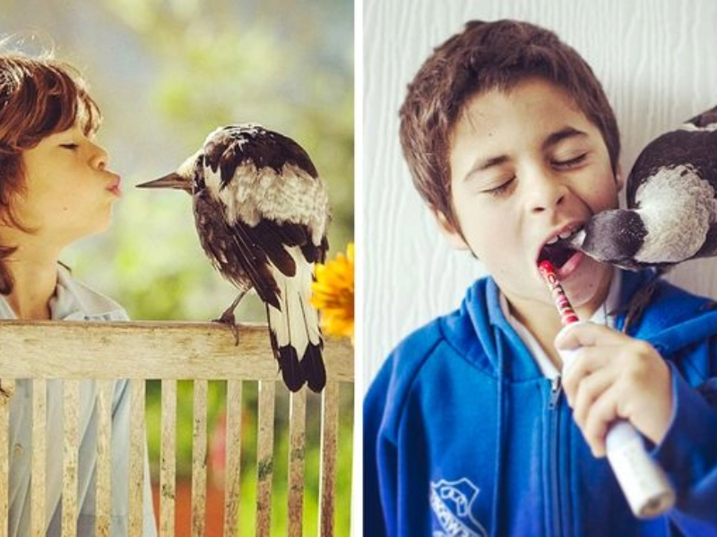 Noah discovered a fallen baby magpie and his family created a safe indoor nest while she recovered. Once strong she began exploring outdoors yet kept returning, finally choosing a flowering plumeria tree as her permanent base, a quiet symbol of mutual trust.