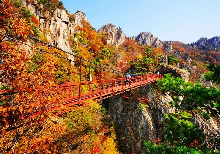 Set in Wolchulsan National Park, the Cloud Bridge hugs rocky heights and delivers abrupt vertical perspectives. Steep approaches and cliffside exposure attract hikers eager to pair physical challenge with striking ridge scenery.