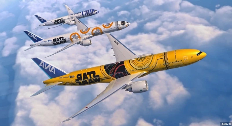 ANA’s trio of Star Wars-themed planes turns the fuselage into a storytelling canvas. Detailed character art and iconic imagery create an immersive experience. In collaboration with Lucasfilm, these flying billboards excite fans and set a new bar for themed branding in aviation.