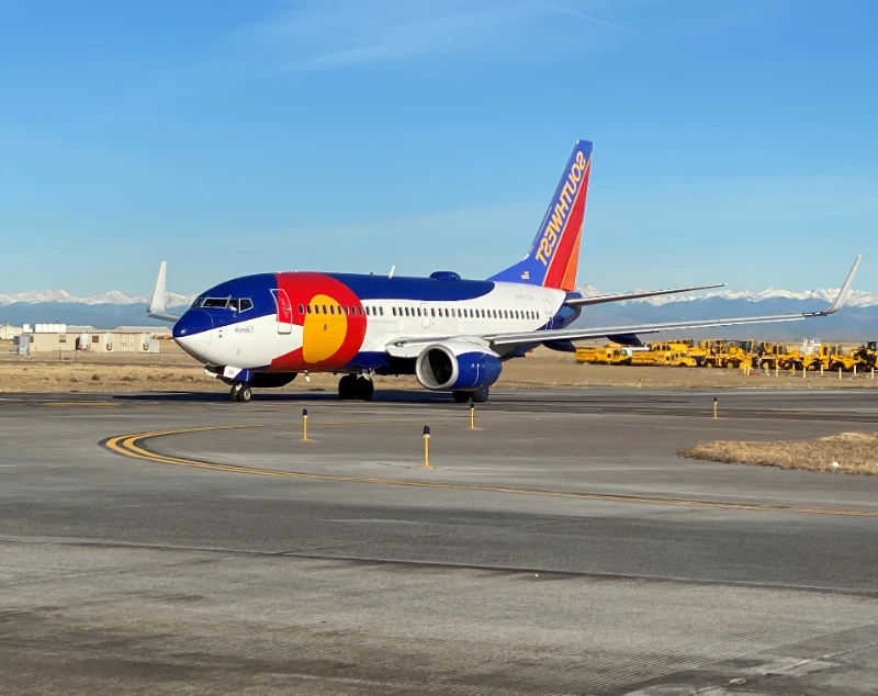 Southwest’s Colorado-themed aircraft is a masterclass in regional branding. The state flag’s bold red “C,” golden disc, and blue and white stripes wrap the fuselage, honoring Denver ties and local pride. The special livery boosts recognition, reinforces market connections, and gives the jet a standout identity.