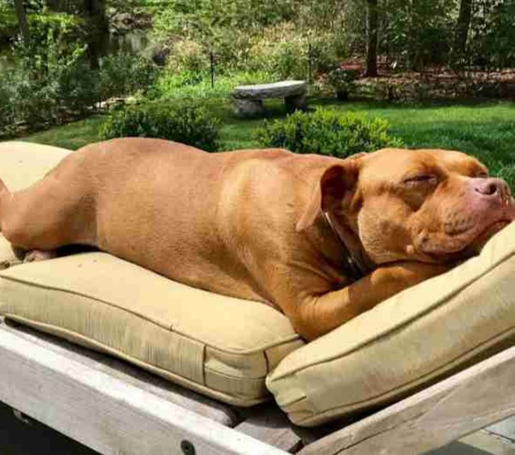 4. This dog spent eight years on bare concrete and now enjoys every soft bed she could want.