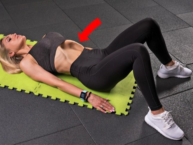 Lie on your back with bent knees and arms at your sides. This move works best on an empty stomach. Inhale deeply, then exhale through your mouth while pulling your abs toward your spine, releasing all air from your lungs. Gravity helps here. Hold for 15 seconds, then relax. Increase the hold up to one minute if comfortable. Repeat 3 to 5 times. Each session should last at least 2 minutes. If you have stomach or health concerns, proceed with caution. It increases intra-abdominal pressure, which can be risky for certain conditions. Avoid if you have heart issues, herniated discs, or asthma.