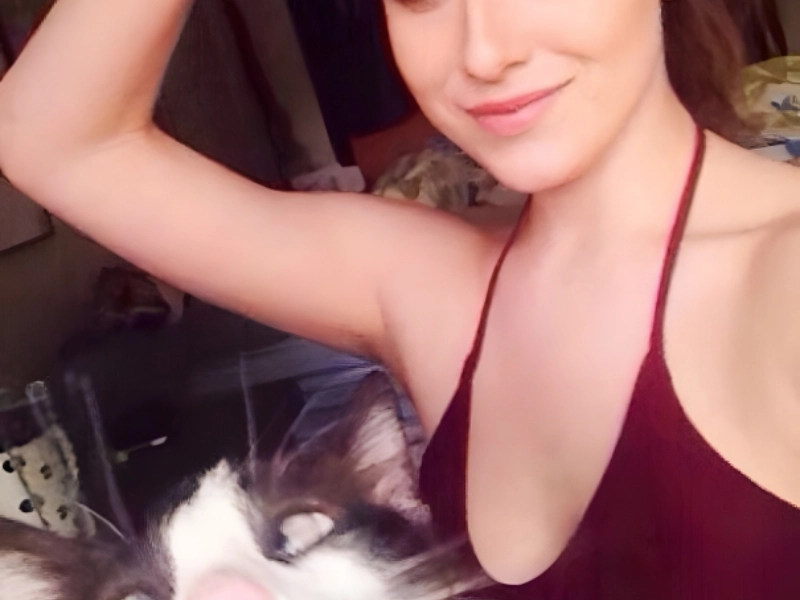 Selfie sabotage is real. One woman poses while her cat steals focus with crossed eyes. Cats love joining selfies. Maybe a strong scent distracted her or the closeness felt intense. A quick deodorant swipe might assist next round.