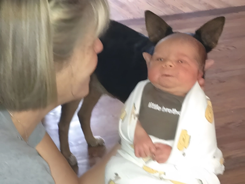 At first glance it resembles a rare Grogu snapshot. Ever since The Mandalorian we wanted more of those ears. It is not actually him—just perfect timing creating a Yoda style silhouette. The baby might be thinking I am all ears Mom.