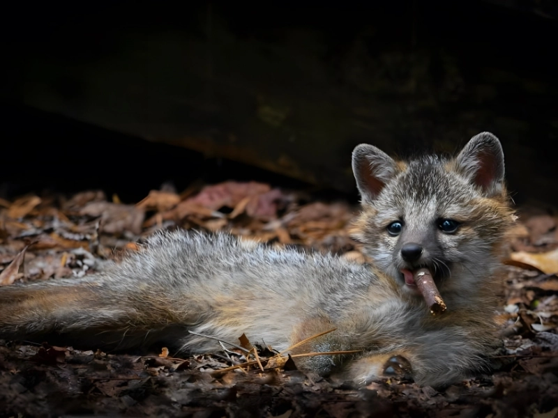 Too Young to Smoke Like That Exploring a Virginia woodland cottage ruin, Dakota Vaccaro encountered a fox family and patiently observed until this humorous pose emerged, blending innocence with parody in a single glance.