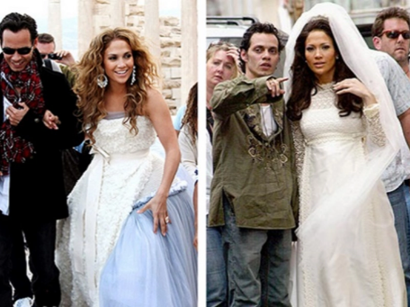 Jennifer Lopez married Marc Anthony in 2004 wearing a finely crafted Vera Wang design. Complex detailing and a flattering contour amplified her signature glamour, creating a lasting fashion moment.