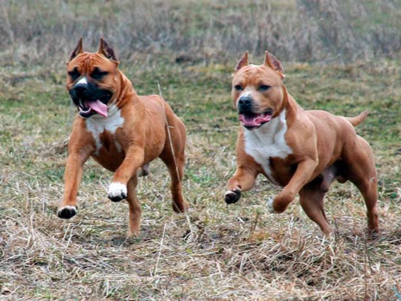 Staffordshire Terriers are intelligent, loyal, and energetic. Unmet exercise or training needs can lead to frustration based behaviors. Daily physical outlets, structured play, obedience practice, and early socialization support a stable, friendly temperament.