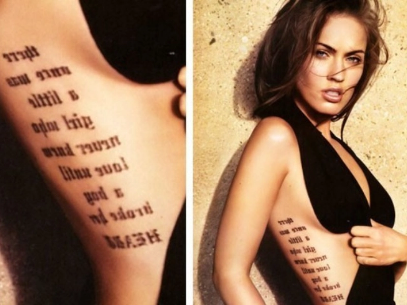 Megan Fox: Speaking Through Ink Megan Fox is known for bold tattoos as a form of self-expression. A notable piece is a philosophical quote on her side, reflecting her love of meaningful ideas. It adds to her style and serves as a reminder of her values.
