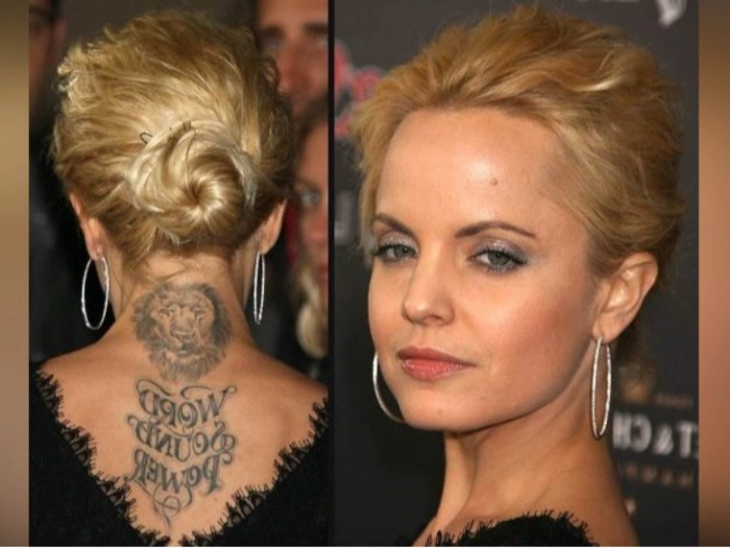 Mena Suvari: A Power Statement Mena Suvari’s back reads "Word Sound Power" under a lion’s head, standing for strength, courage, and the force of words.