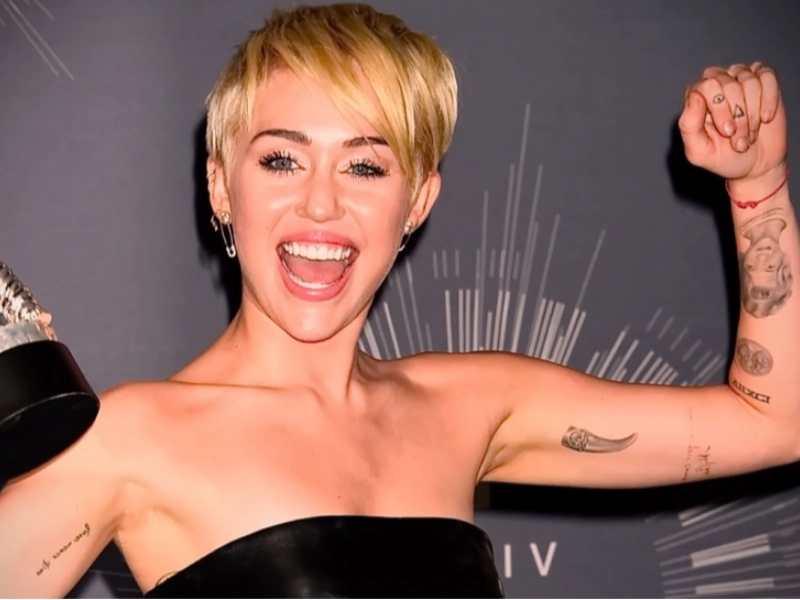 Miley Cyrus: An Ever-Evolving Gallery Miley Cyrus fearlessly adds new designs, treating her body as a canvas. Her ribs, thighs, arms, and chest feature varied tattoos, each telling its own story.