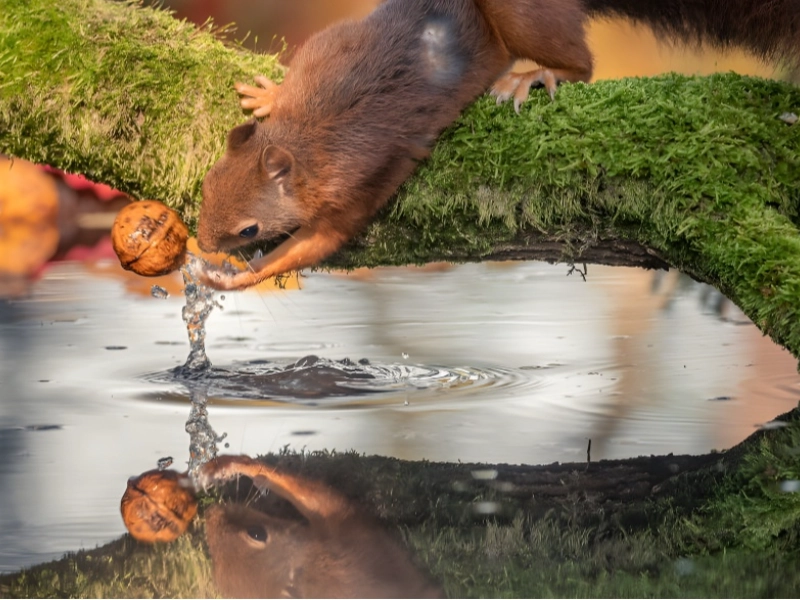 She washes her nut before eating it—what a clever girl. This charming scene shows a female animal—likely a raccoon or a bright primate—rinsing food before eating. Near a stream, pond, or water bowl, she carefully works the nut in the water. Instinctive for some species, it feels strikingly human in its hygiene. The timing reveals a brief but telling behavior, inviting admiration for animal cognition and the parallels with our own routines. It both amuses and informs.