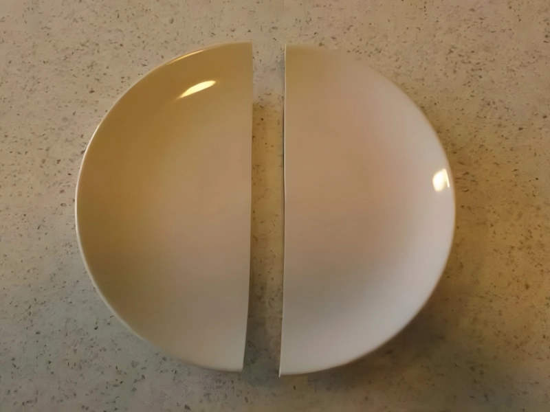 What happened: A plate broke perfectly in half Where: Unknown What are the odds of dropping a plate and having it split exactly in two? Social media users debated whether this was real or staged.